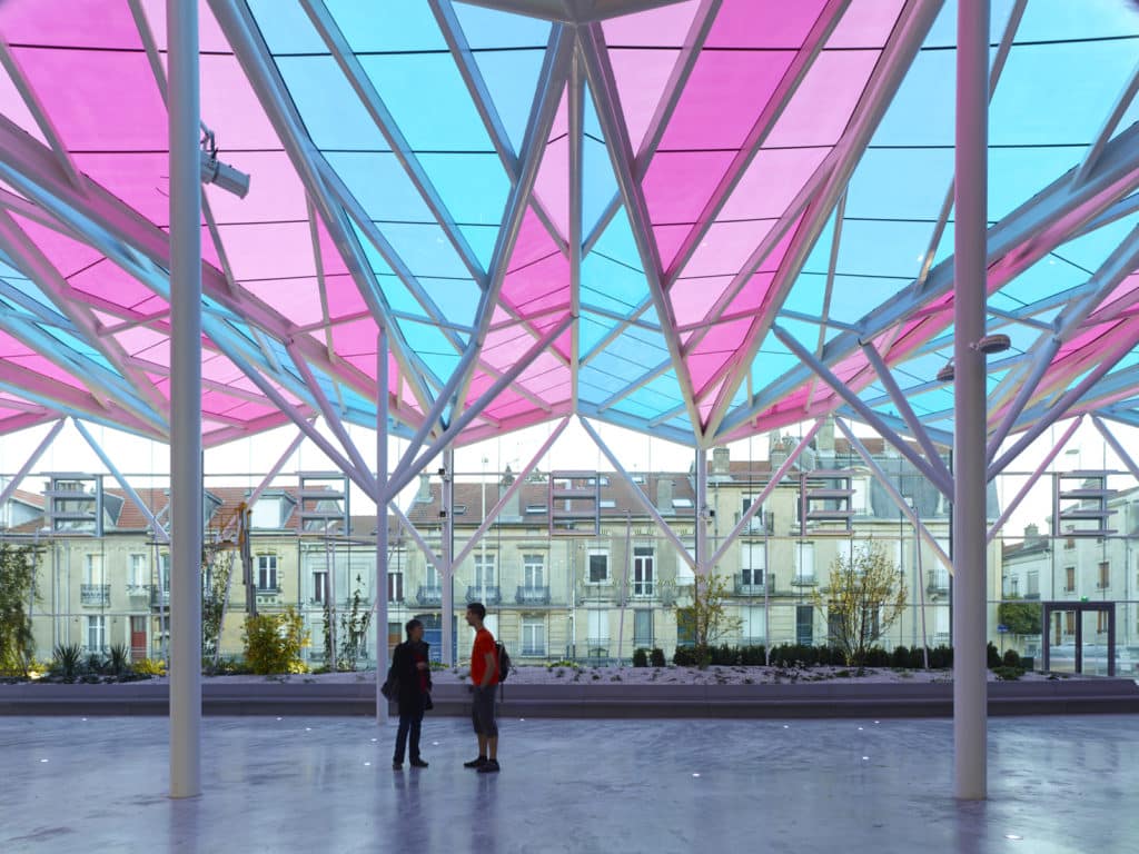 En 2013, Elioth livre les deux premières tranches de la galerie Artem à Nancy. Une rue couverte par des vitrages colorés, portés par un origami d’acier. En concevant la structure métallique et les détails de l’enveloppe, Elioth a œuvré à parfaire la passivité thermique de cet espace tampon urbain, une serre tempérée de nouvelle génération. Créer un « printemps permanent à Nancy », sans recours à des artifices techniques. Depuis cette date, Elioth analyse les résultats des puits canadiens qu’il a conçus. Ces échangeurs air-sol assurent de façon gratuite et écologique le traitement climatique de la rue couverte.