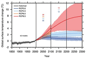 Variation de la température moyenne suivant différentes trajectoires