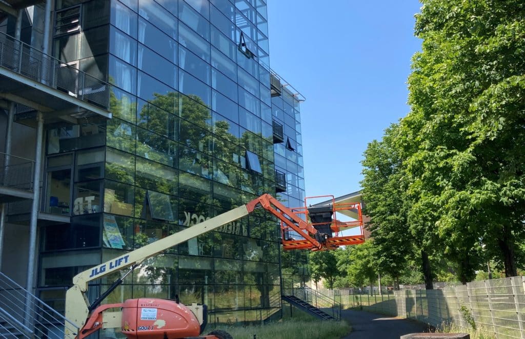 Les anciens vitrages ont été récupérés sur site par Saint Gobain pour leur filière de recyclage