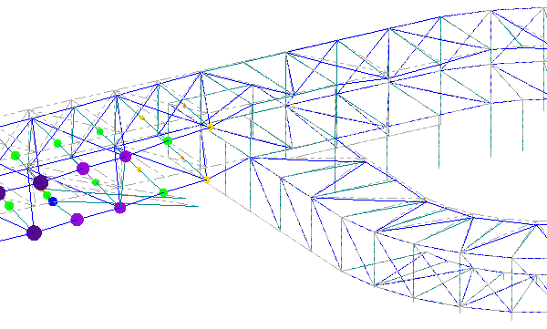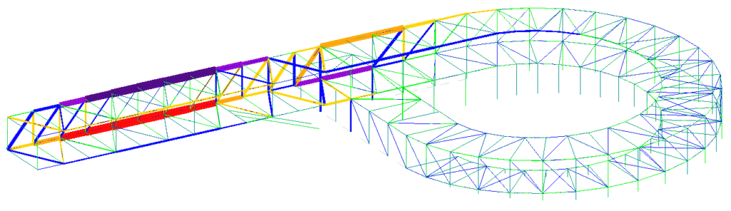 The structure consists of a ribbon of steel latticework that supports the pedestrian bridge deck, the facade and the roof of the station.