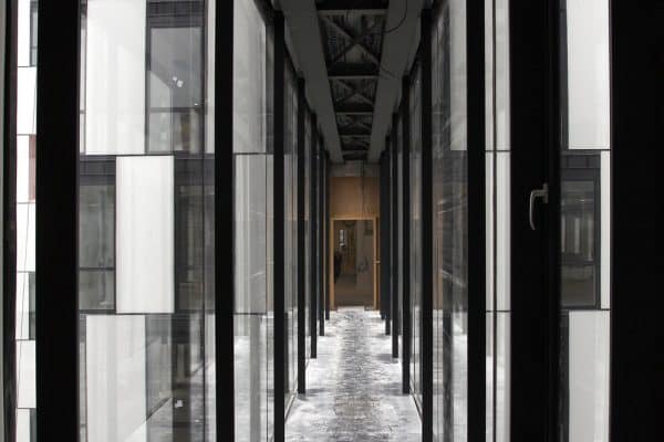 The C2 building incorporates enamelled lightweight / transom fills and double ventilated frames in part vision. This innovative façade technology allows to block the solar contributions outside the thermal barrier while keeping a completely smooth façade. The connecting gates between the buildings are made up of large glazed modules with edge-to-edge junction.
