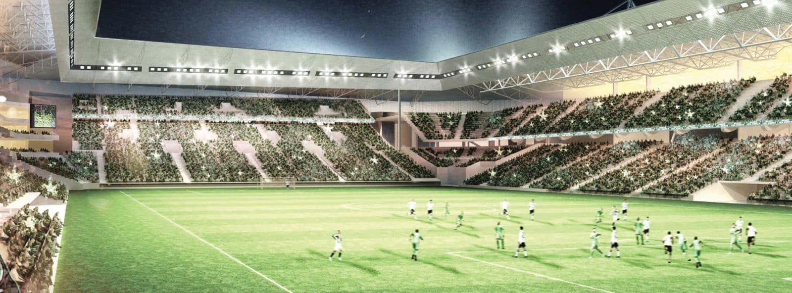 The renovation of the Geoffroy Guichard Stadium in Saint Etienne touches one of the temples of football in France. The successive construction of tribunes and roof frame works mark a milestone with the passage of draft standards for the organization of UEFA European Cup 2016. The increase of space, comfort of the spectators, the continued operation during construction, the occurrence of seismicity in Saint Etienne are parameters that shape this project, whose ambition is to give a unity to the personality of the stadium.