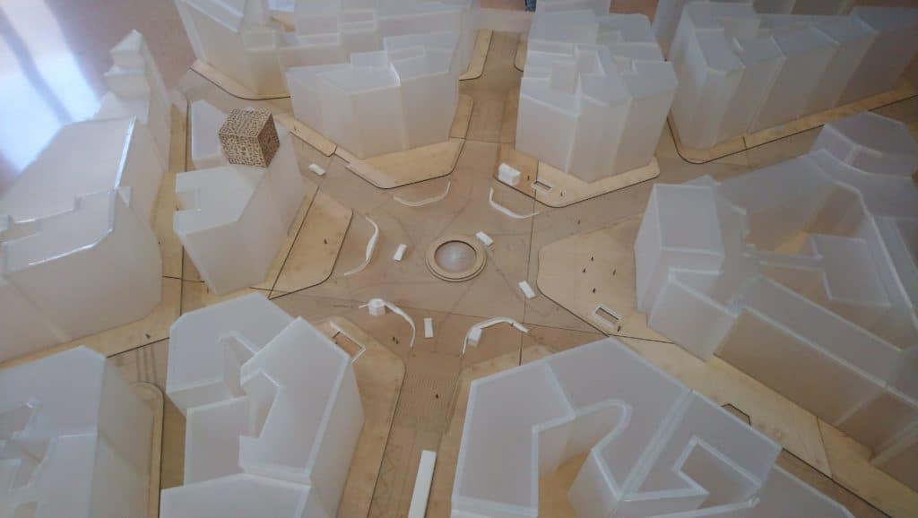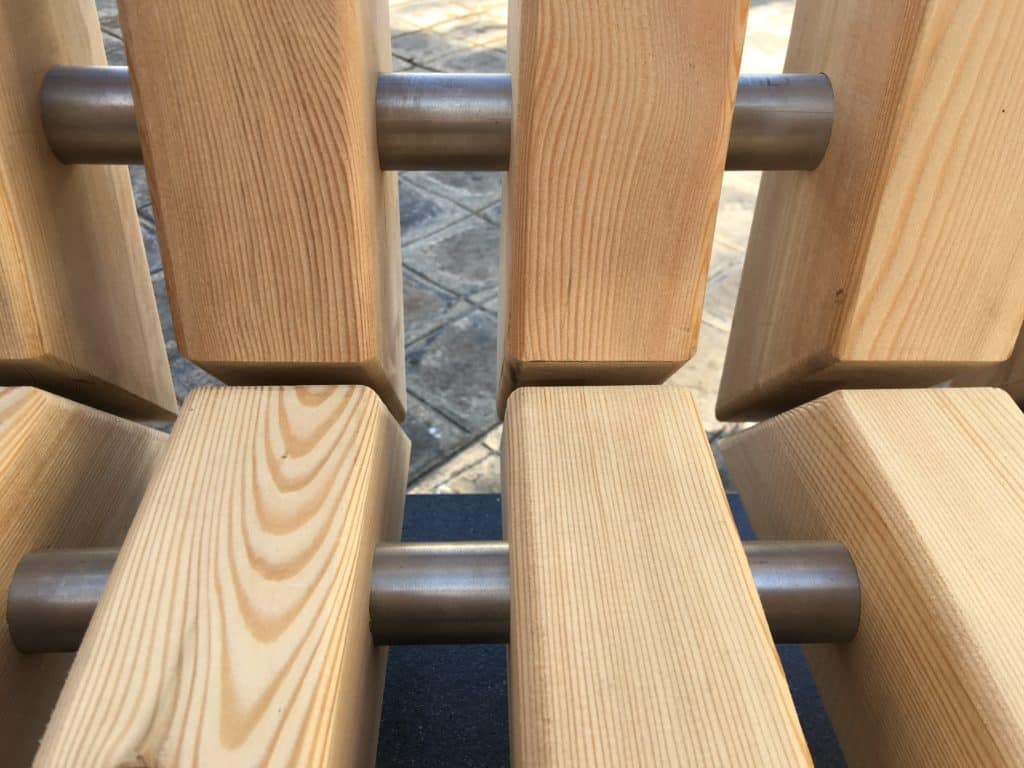 To keep down our use of raw materials and energy, we called on minor infrastructure modifications. The project accepts that there is no need to recreate a paving surface where one already exists with similar properties. The furniture uses wood which has a good carbon footprint and is a carbon sink.