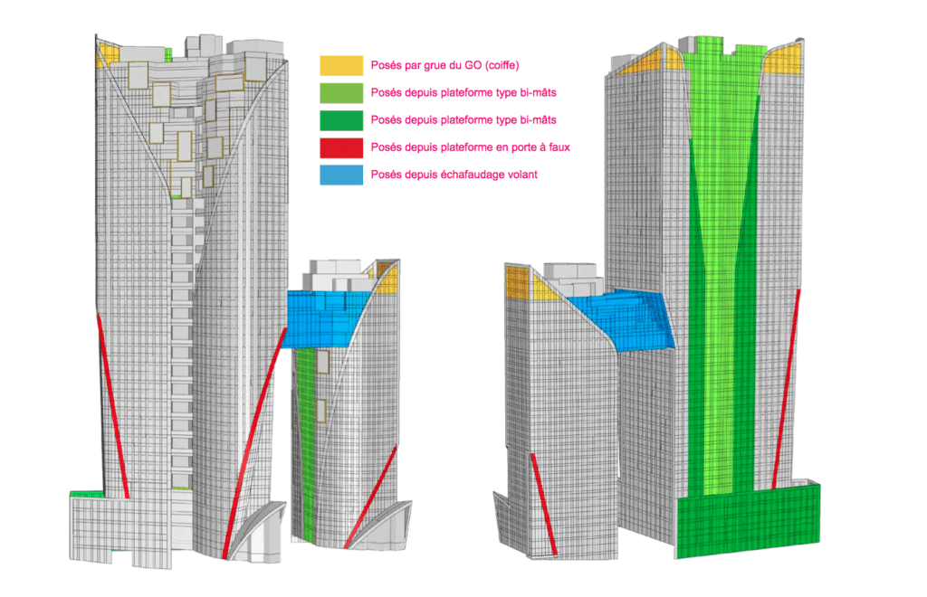 Elioth’s was brought on board by 2Portzamparc to provide full Façade design engineering services and construction supervision for the Sisters Towers at La Défense. The building is composed of two towers connected by a bridge building. The project covers 52 (Tower 1) and 32 (Tower 2) levels from the ground floor, 220 metres high. The levels of Tower T1 are intended to be occupied mainly by offices. The levels of the T2 tower are intended to be occupied by hotel residences.