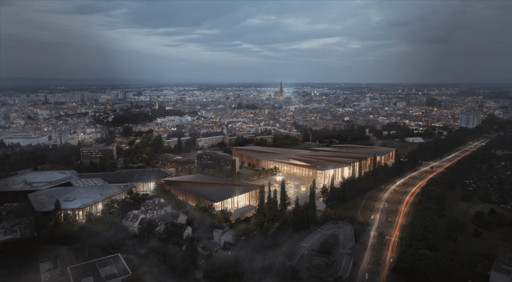 The new Exhibition centre is to be built alongside the Convention Centre (Palais de la Musique et des Congrès) on the Wacken site. This iconic building plays host to a wide-ranging audience. A vast roof covers the 4 main halls and the Nave, a reception area extending onwards from the concourse running alongside the canal and a car park. A fifth hall is built symmetrically on the other side of the concourse and Avenue Herrenschmidt.