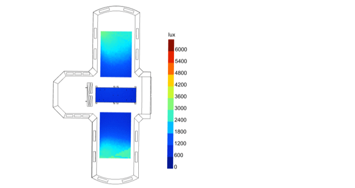 La solution développée atteint pleinement les objectifs : elle élimine tout rayonnement direct sur la scène et garantit un éclairement uniforme et stable tout au long de la journée, malgré la variation de la position du soleil et de l’intensité des rayonnements.