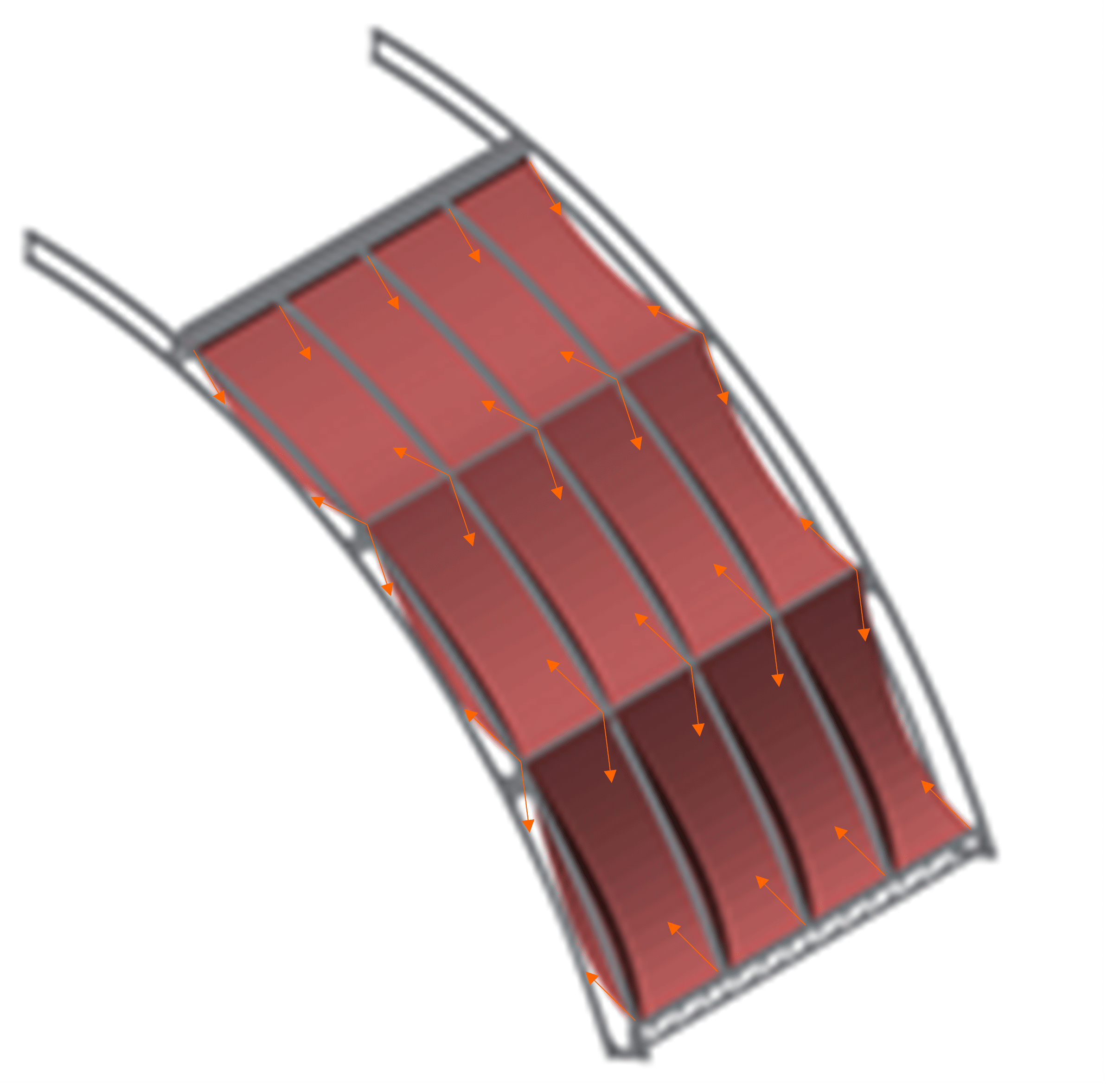 La solution vise à abaisser et homogénéiser la lumière naturelle, en particulier sur la zone de compétition (FOP), qui ne devait recevoir ni lumière directe ni ombre portée. Les voiles opaques sont réalisés en pans, complétés par des jupes de raccord enveloppant la structure pour éviter toute fuite lumineuse.