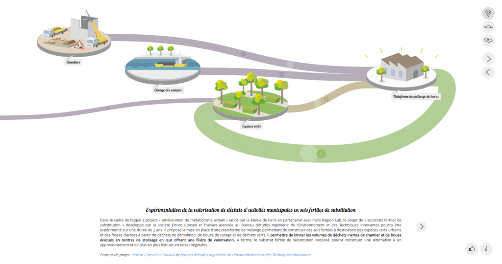 Construit pour l’appel à projets « Amélioration du Métabolisme Urbain » de la mairie de Paris, le site propose de nombreux exemples de solutions efficaces et déjà en place, ainsi que la présentation de tous les projets lauréats de l’appel. Il donne également toutes les données de contexte nécessaires, au niveau de Paris, de la Petite Couronne et de l’Ile de France, les tendances d’évolution, et un focus sur les points marquants du métabolisme de ces territoires.