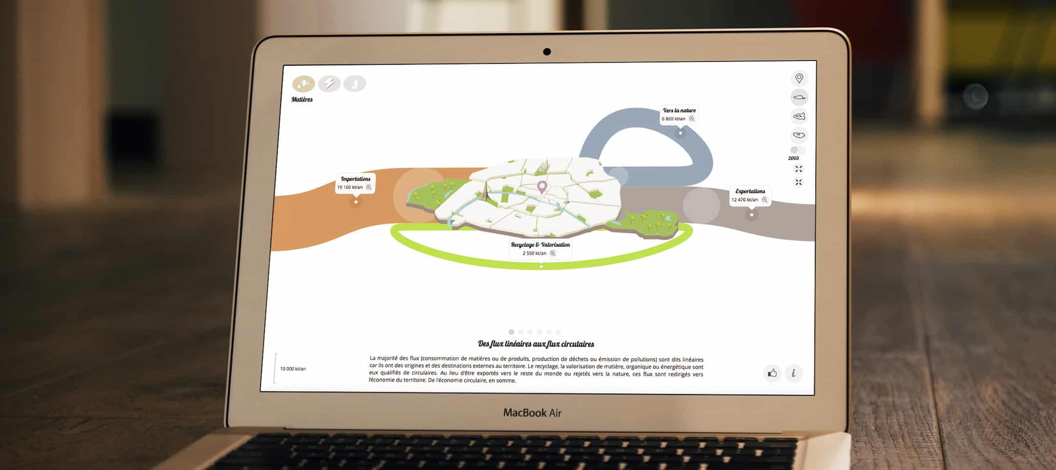 L’outil présente surtout les actions concrètes d’amélioration de cette circulation de flux, comme le propose l’économie circulaire qui fait beaucoup parler d’elle. Comment pourrait-on réutiliser les matériaux issus de la déconstruction au lieu de les importer ? Comment les déchets pourraient-ils être transformés en énergie ou en matériaux réutilisables ?