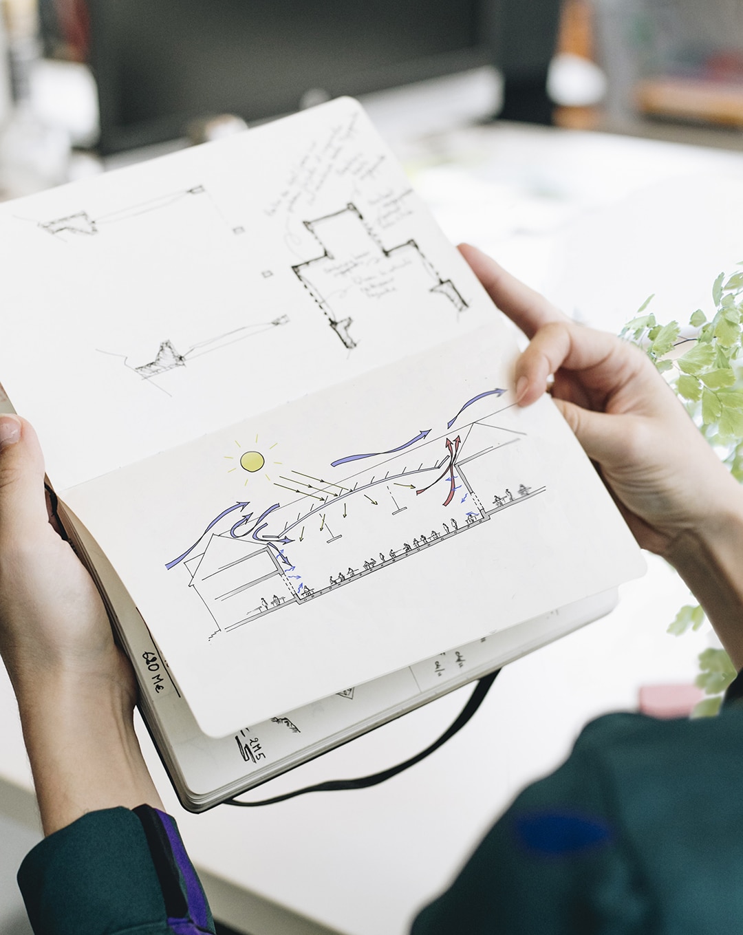 L’essentiel du travail de conception environnementale porte sur l’enveloppe de la tour qui, en complément de la rénovation des réseaux et des systèmes, engage largement l’objectif de sobriété visé par le projet. À la différence d’une construction neuve, la performance énergétique de la rénovation de la tour ne peut pas s’appuyer sur des critères de compacité ni d’orientations. C’est donc l’épaisseur de la nouvelle façade, sa forme, sa technicité et sa matérialité qui supportent l’essentiel de la performance bioclimatique du projet, au bénéfice du confort et d’importantes économies d’énergie. Cette façade ultraperformante intègre dans son épaisseur un principe inédit de ventilation naturelle des locaux, praticable sur toute la hauteur de la tour, qui complétera la performance thermique des façades pour répondre aux objectifs d’excellence du projet, tout en modifiant le rapport des occupants avec l’extérieur.