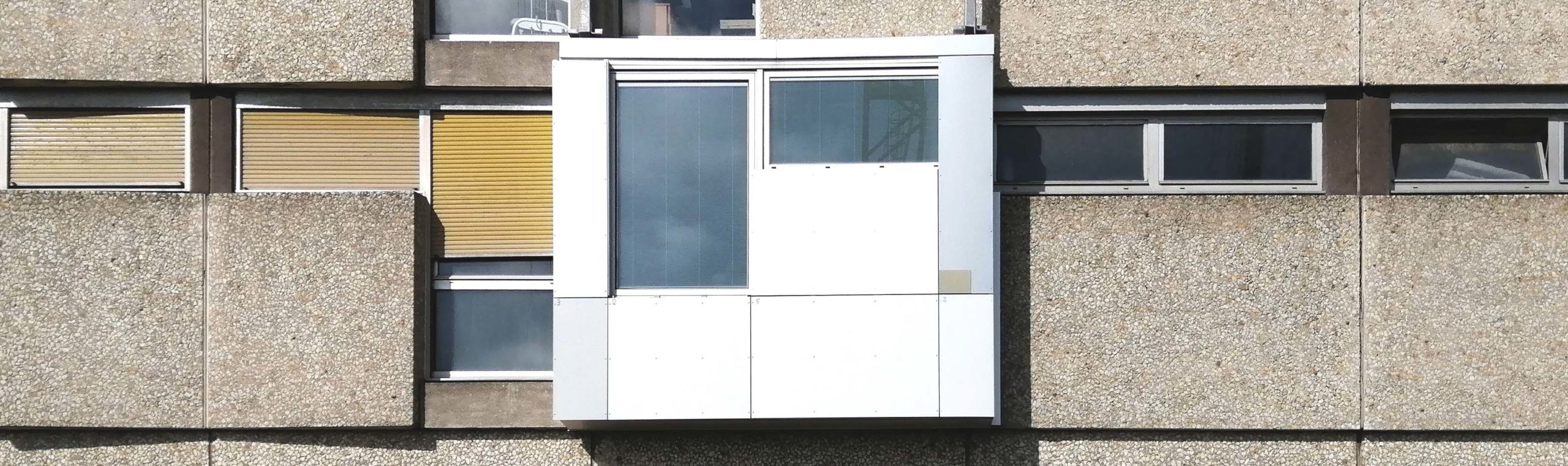Prototype de façade en cours de pose sur le bâtiment existant, Elioth