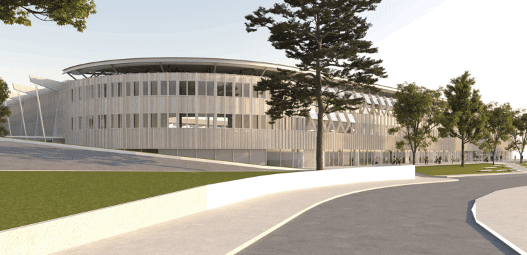 Le projet de restructuration du parc du Moustoir, à Lorient, vise à moderniser le parc urbain et le Stade Yves Allainmat qui s’y trouve, siège de nombreux événements sportifs et culturels locaux. Il intègre la reconstruction d’une nouvelle tribune d’Honneur et le réaménagement des locaux et tribunes existantes, dont l’enveloppe extérieure sera rendue homogène par une intervention sur l’ensemble des façades.