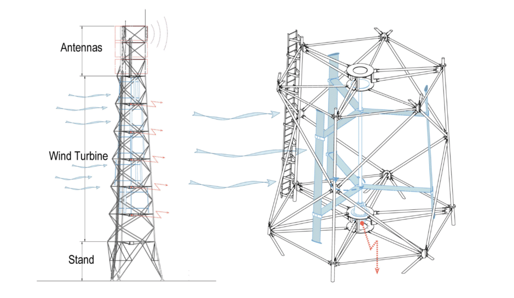 Depuis 2013, le développement de cette architecture prometteuse d’aérogénérateur se concentre sur les réseaux télécoms. En 2014, une start-up dédiée a été créée pour accélérer le développement du produit. Wind-it, Elle développe et propose une nouvelle tour pour les télécommunications permettant des économies d’énergie importantes tout en préfigurant de nouvelles solutions d’électrification rurale 100% renouvelable. Il s’agit d’intégrer une ou plusieurs éoliennes à axe vertical à l’intérieur d’un pylône métallique de grande hauteur, avec un design spécifiquement conçu pour les accueillir. Une convergence concrète des réseaux de communication et d’énergies renouvelables. Ce projet a fait l’objet de demandes de brevet.
